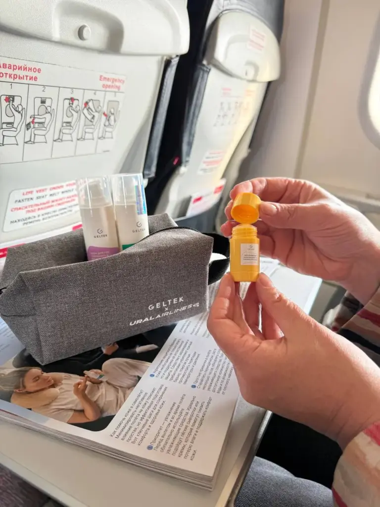 — Пассажиры международных рейсов Ural Airlines получили дорожные косметички с уходовыми средствами Geltek